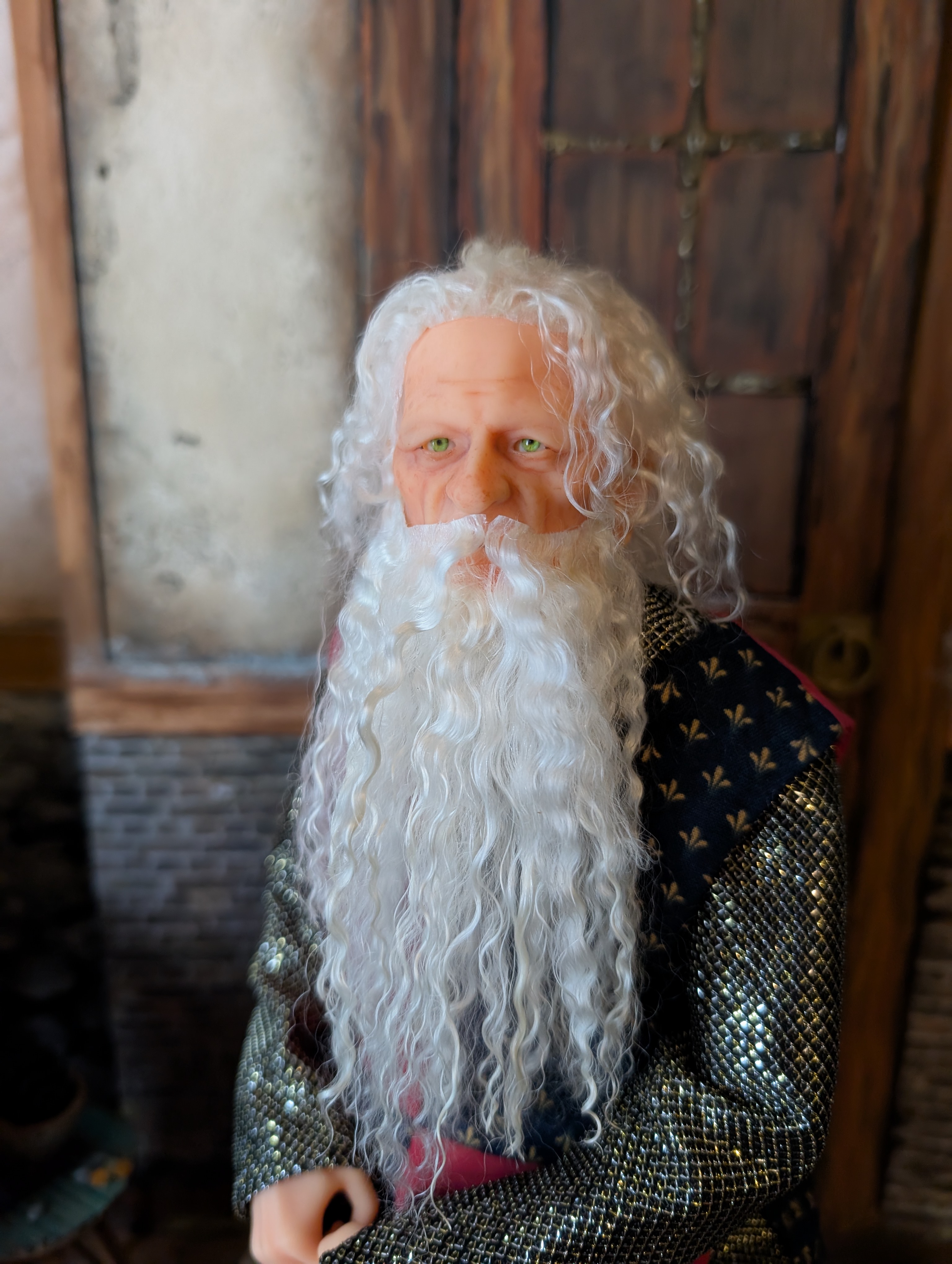 Jenkins, aka Old Man Jenkins, is a 3d printed ball jointed doll. I purchased his file "frail grandfather" from Dillan76 on CGtrader.com. He is printed at 95% scale and printed on my Anycubic Photo Mono SE in Anycubic Beige resin. I enlarged his eyes slightly after printing. I wish he had more hand options, but he does photograph well. Mostly he plays the part of apothecary or advisor, but sometimes grizzled warrior or even poor townsmen.
